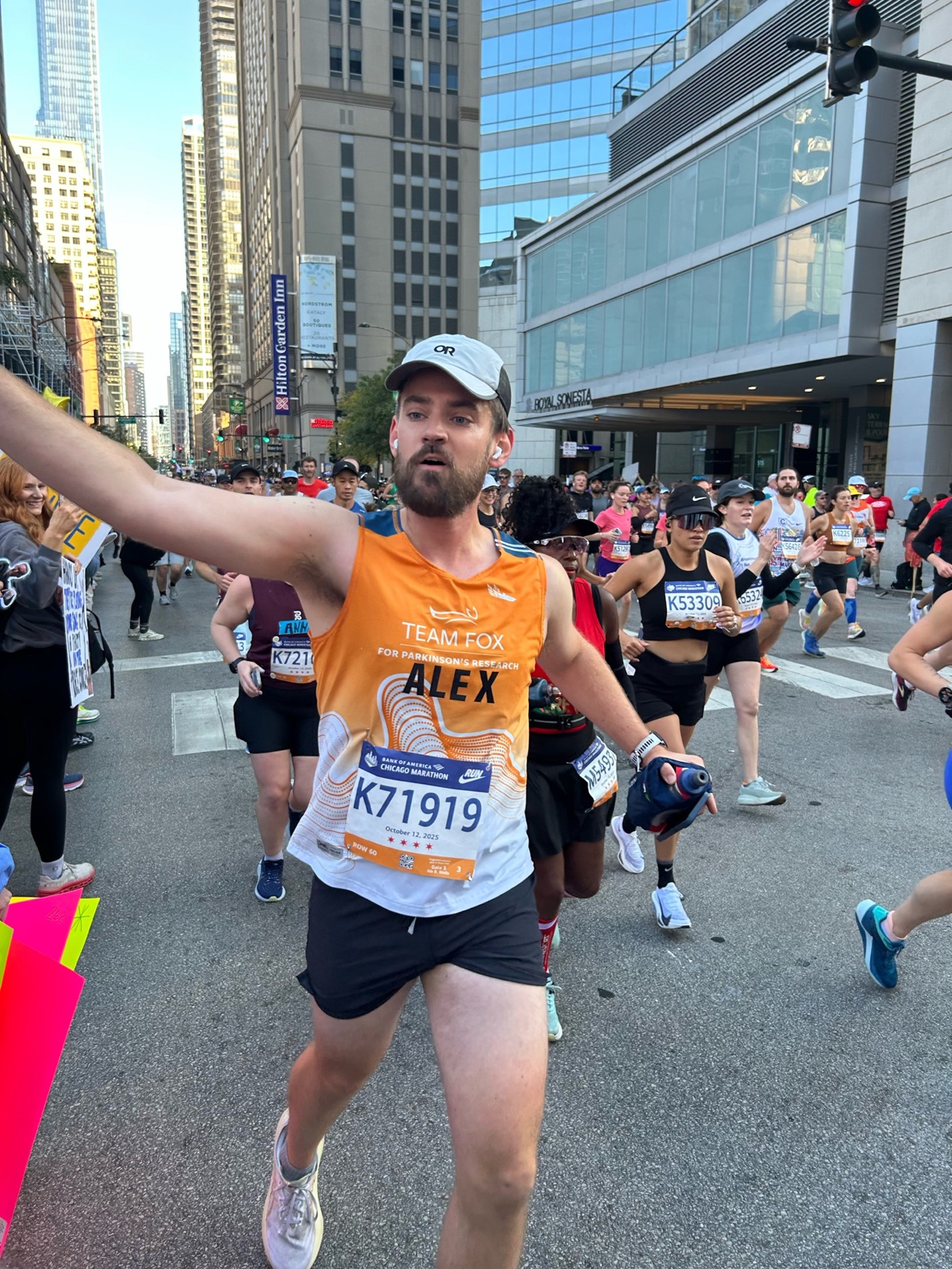 I find that when you are an active and otherwise healthy man in his early 30’s who has tremors, there is a huge stigma and sense of shame and embarrassment when out in everyday society. In fact, I have shared with many people that the first (and up to this point, only) time where I have not felt the need to physically mask or hide my tremors was at the Team Fox luncheon, held held on the day before the Chicago Marathon — it was truly the BEST feeling. That said, I would like our society to reach a point to where others and I feel comfortable going out through society without hiding this symptom.