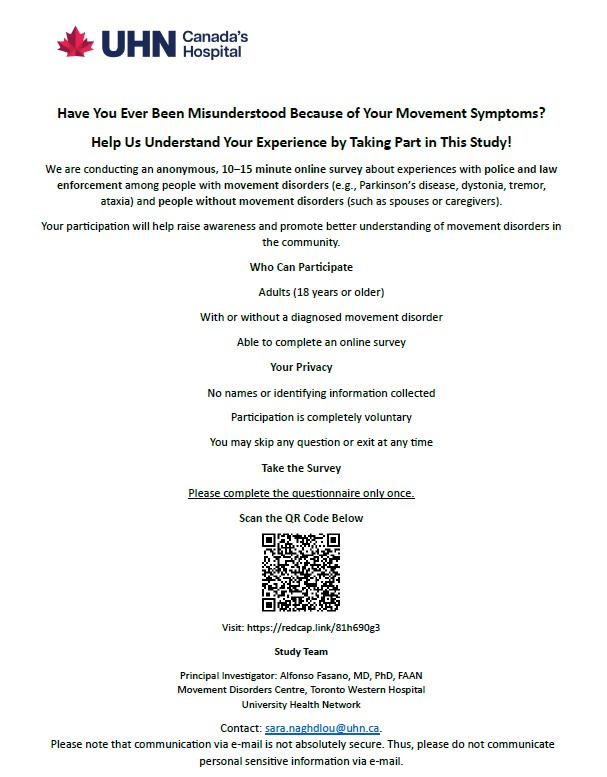 Policing and Parkinson’s Disease: Encounters, Training, and the Need for Awareness And a new study by Dr. Alfonso Fasano and Dr. Moeed Zafer Syed: Have You Ever Been Mistaken for Being Intoxicated Because of a Neurological Condition?