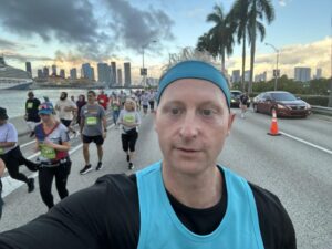 Miami showed up as Miami always does: hot, loud, and full of life. Perfect weather. After running RunDisney events in Orlando—where it can be surprisingly cold—I even learned about and bought a heated poncho (yes, those exist!). I woke up in Miami with it… laughed… and ran it straight back to the hotel front desk. No cold here. This is the 305, baby.